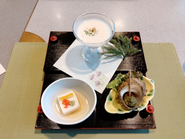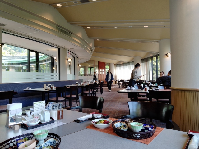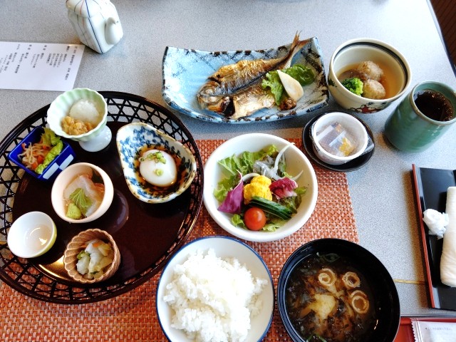 一夜明け、朝食はこんな感じ。洋食も選べるのだけれど、皆さん和食にしました。