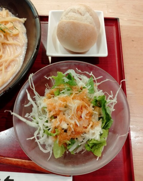 パンは別に要らないかな。サラダにも明太子ドレッシングが使われていましたョ。