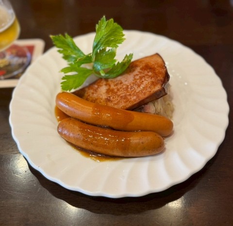 ハーブの香り良い本格的なドイツソーセージ等。付け合わせのザワークラウトもとてもおいしかったです。