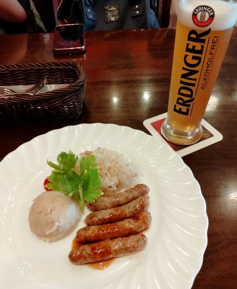 私はノンアルコールのエルディンガー。ヴァイツェンという分類のビールになるのだそう。