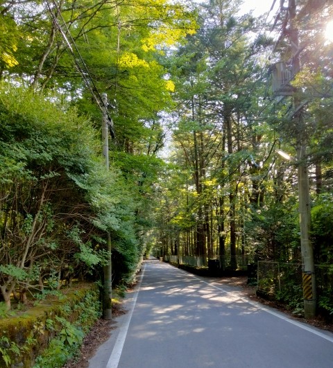 駅前の大通りから一本入ると、軽井沢らしい木立の道になります。いたる所に豪華な別荘が立ち並んでいました。
