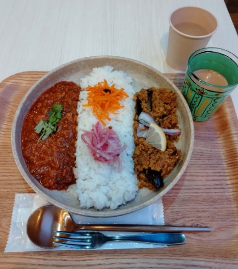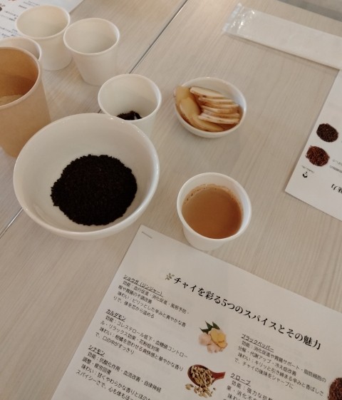 実習で作ったスパイスたっぷりのチャイの他にも、色々な種類のチャイの試飲に、カレーライス、キャロットケーキの提供が次から次へとあり、お腹がパンパンで苦しくなる!