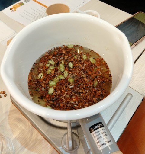 とてもスパイスが濃厚な、美味しいチャイが出来上がりました。