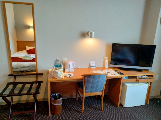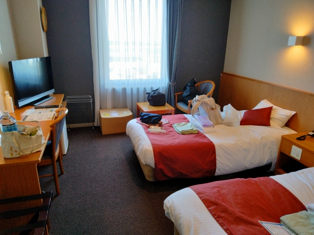 お部屋は基本的な配置の使い易いツインルーム。自分の荷物でとっ散らかっていますが、部屋の掃除は行き届いており気持ち良く滞在できました。