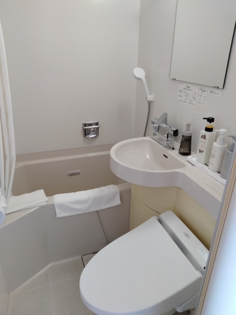 バスルームは3点ユニット。温泉の大浴場があるのでバスタブは使いませんでした。