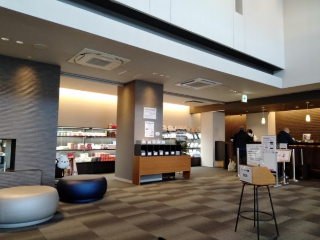 すっきりと広いロビーに、品揃えの良いお土産屋さんがあります。スタッフさんも親切でGood! 荷物も預かってくれます。