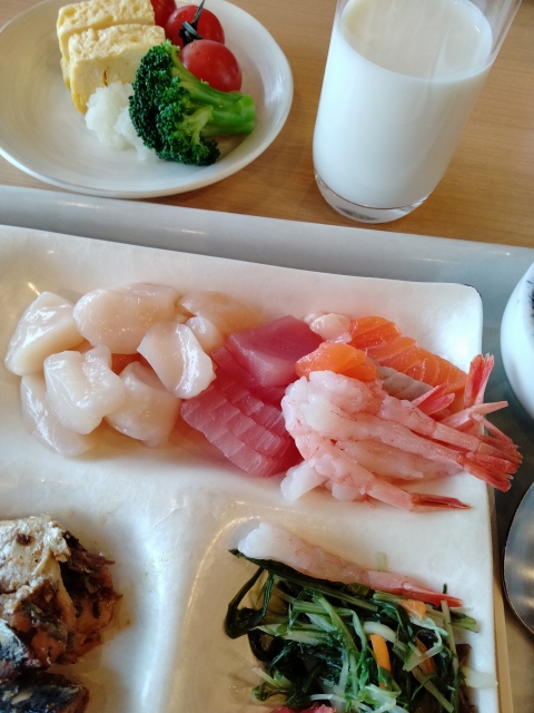北海道の、それもオホーツク海に面する紋別のホテルですから。期待どおりに朝から海鮮は充実していました。