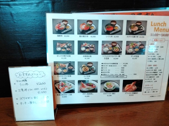 紋別港の海鮮食堂。ザ・漁港の食堂って感じの絶対にうまい海鮮定食が食べれそうという安定感があります。