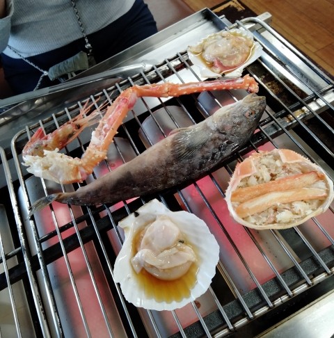 【マルカイチ水産】は、すぐ隣の建物で水産品の直売所があり、ホタテ、カニ売っていました。正直、炉端焼きの食堂で出しているカニよりも、直売所の方が安くて良いカニを扱っていました。