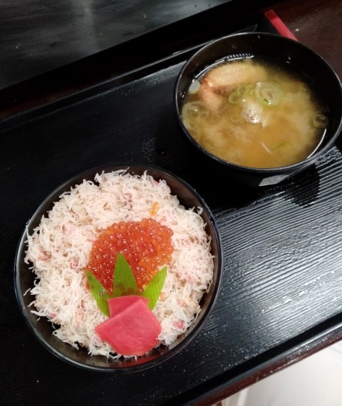 私の選んだカニ・イクラ丼にセットのカニ汁。