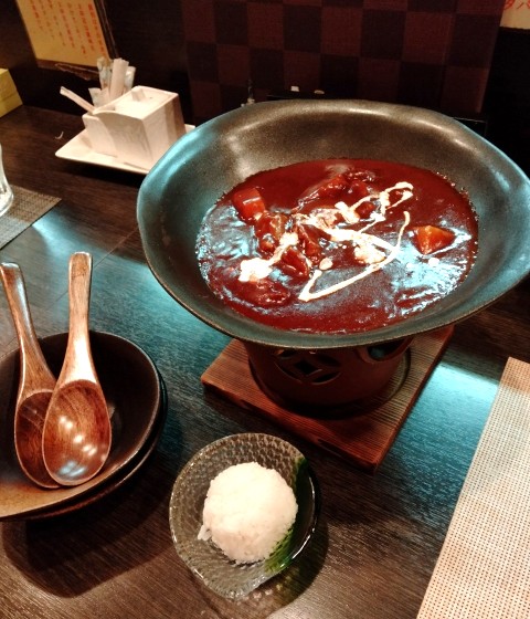 ビーフシチューに一口ライスが付いてきて、リゾットにできるのが有り難い。