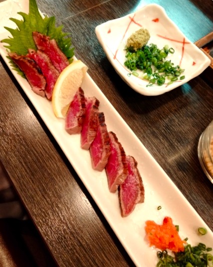 前の日に食べて美味しかった牛のたたき をアンコール。でも、前の日の方が良い仕上がりでしたね。ここはご愛敬。