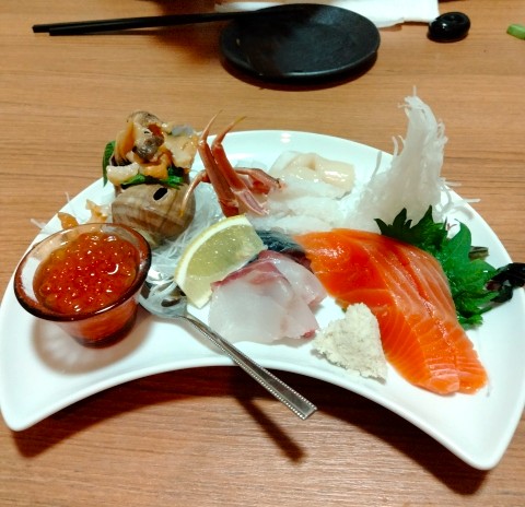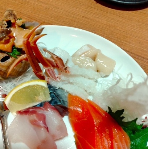 刺身盛り合わせ。なんと、カニ刺しも入っています!