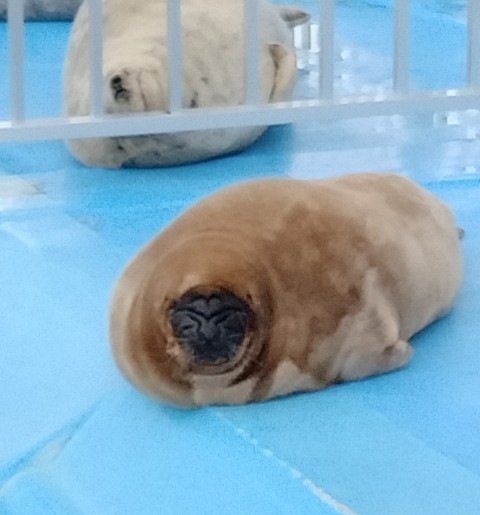 バックヤードには、保護あざらしの ましろ君が静養していましたし(撮影禁止)、2頭の小さなあざらしの赤ちゃんに感動しました。今は元気に立派な体格に育ってます。