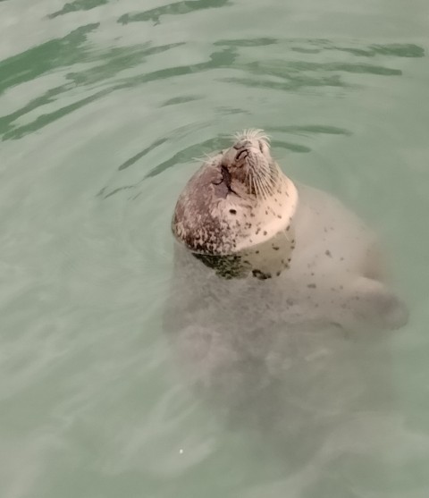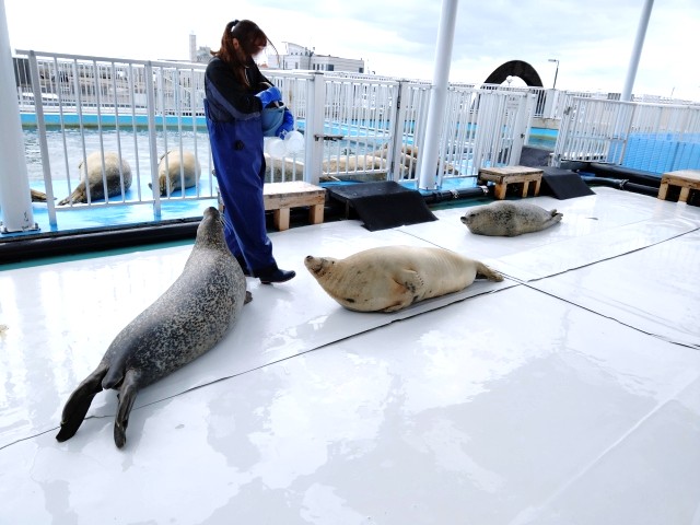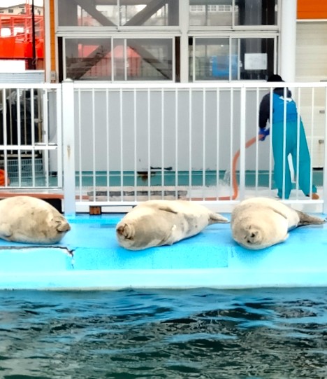 (保護して海に戻しているけれど、諸事情でそのまま残って飼育されているアザラシが公開され観察できる。)