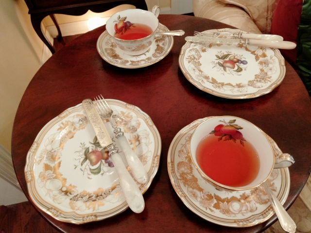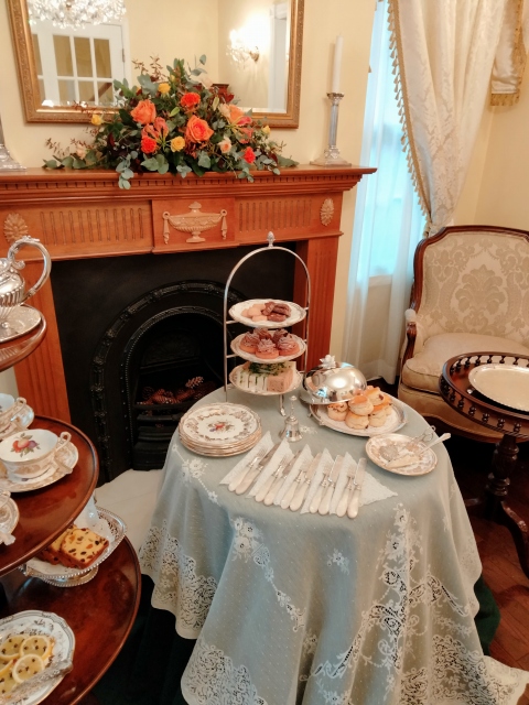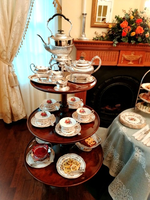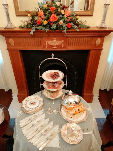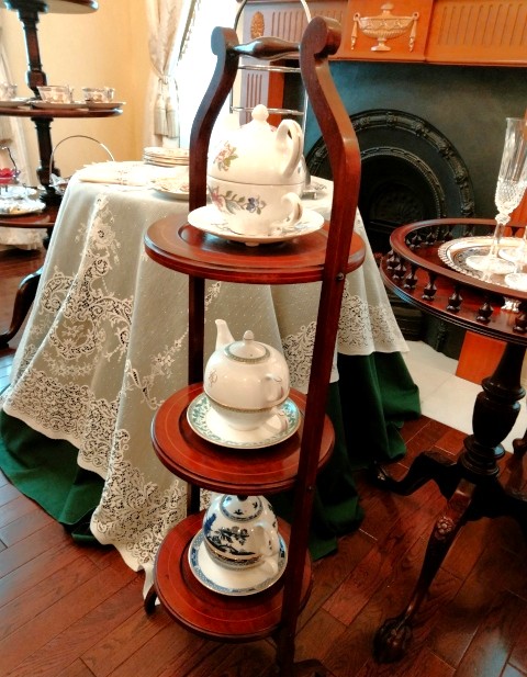 先生からドローイングルームのインテリア、イパーンとスリーティアーズの歴史、についての講義があった後に、ローテーブルのヴィクトリアンスタイルでのティーパーティーで所作の実践の流れでした。