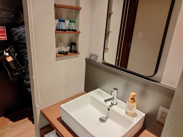 洗面台が部屋の真ん中にある。