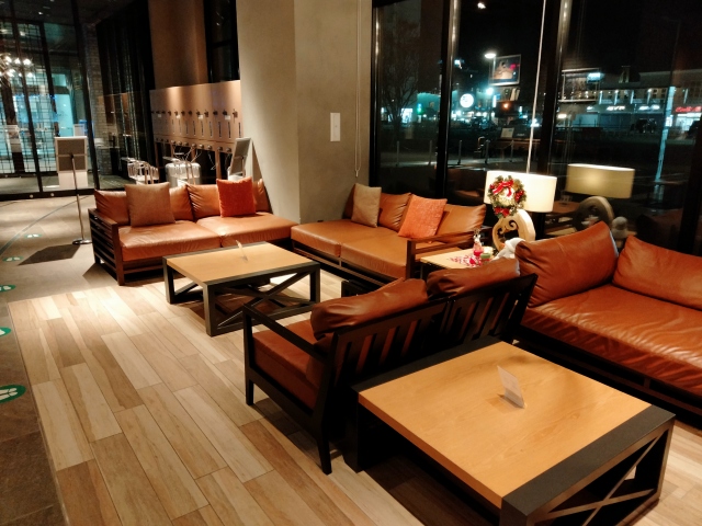 最上階には大浴場があって、無料のコーヒー等が飲める休憩スペースがあります。