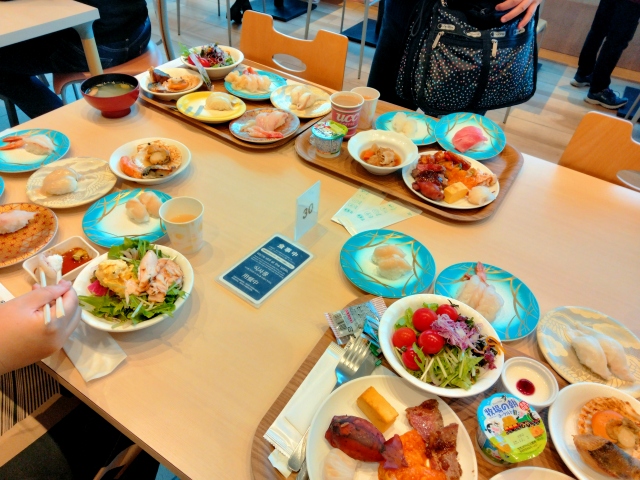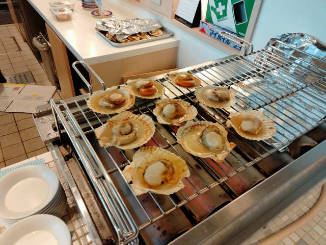 ホタテは、焼きホタテと、回転寿司コーナーに回ってはいましたが、普段はあるという刺身載せ放題のホタテはこの日は無かったです。ホタテ~お腹いっぱい食べたかった~泣。