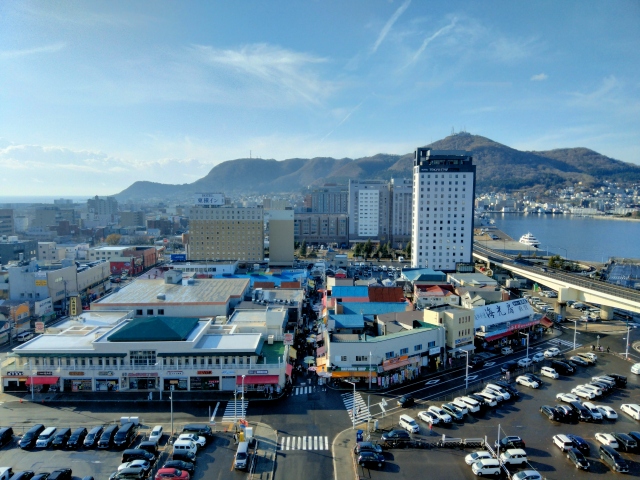 函館朝一が正面にあります。
