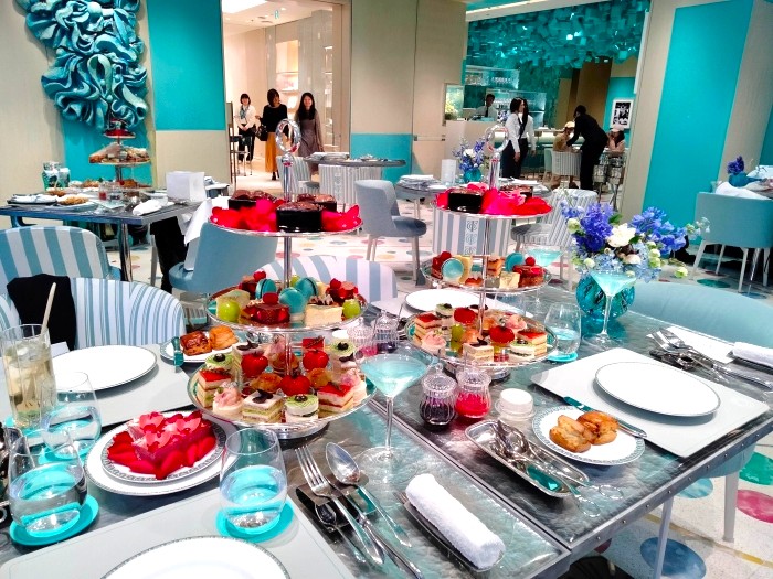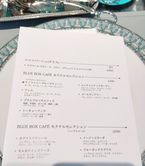 ブルーボックスカフェ の中は、ティファニーブルーでキラキラ。なんだかもう眩し過ぎちゃって、精一杯のオシャレはしてきたつもりでしたが、自分がひどく場違いのように思えて居心地が悪かったです。(笑)