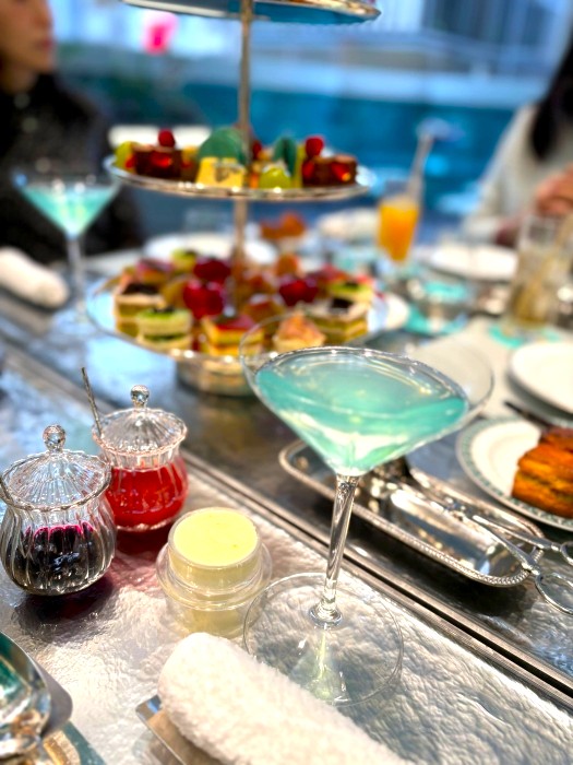 同行の何人かは、シグネチャーカクテルである ティファニーブルーマティーニ¥2,500をオーダーしていました。美しく、非常に映えます。